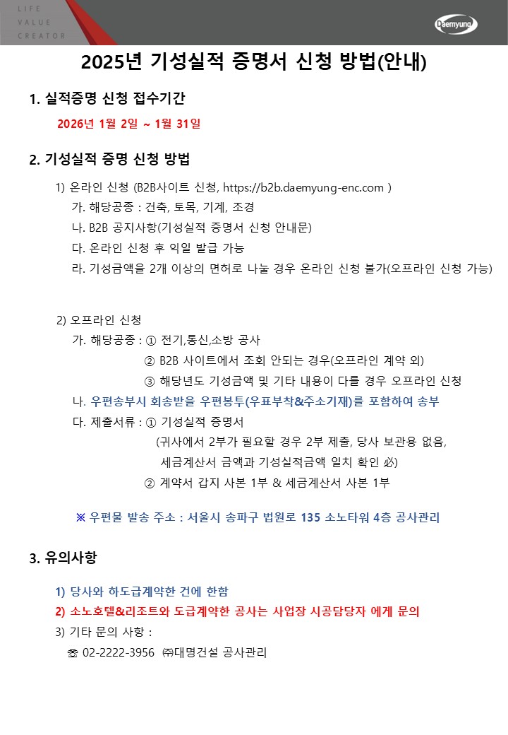 제목 2025년 기성실적 증명서 신청 방법(안내)