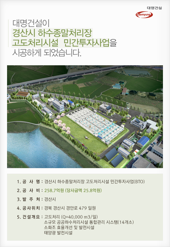 제목 [건설수주] 경산시 하수종말처리장 고도처리시설 민간투자사업