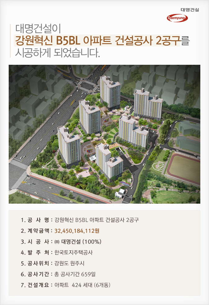 제목 [건설수주]강원혁신 B5BL 아파트 건설공사 2공구