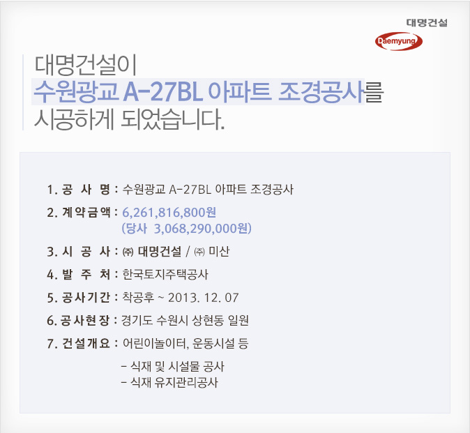 제목 [건설수주]수원광교 A-27BL 아파트