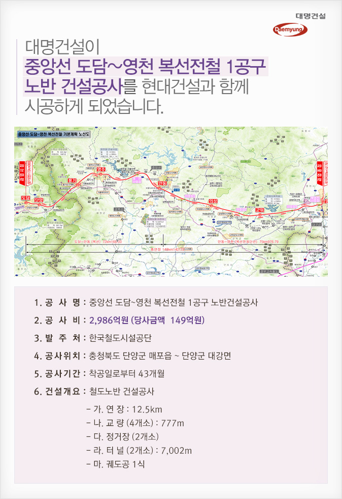 제목 [건설수주]중앙선 도담~영천 복선전철