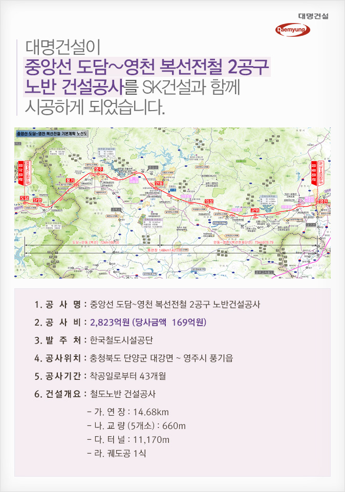 제목 [건설수주]중앙선 도담~영천 복선전철 2공구 노반 건설공사
