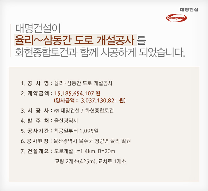 제목 [건설수주]율리~삼동간 도로 개설공사