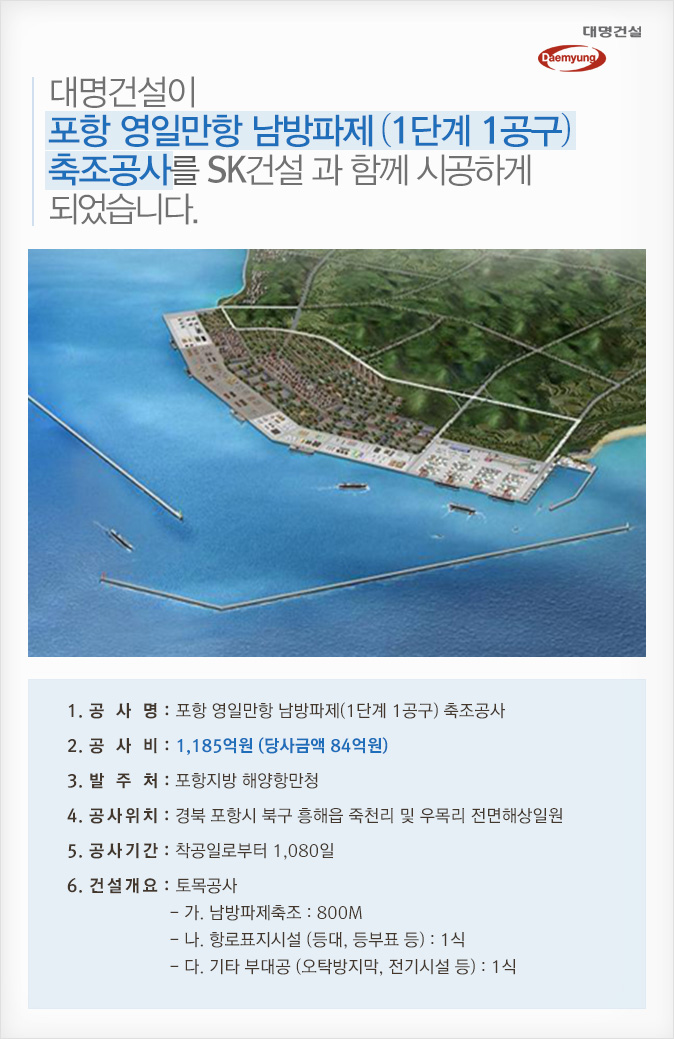 제목 [건설수주]포항 영일만항 남방파제(1단계 1공구) 축조공사