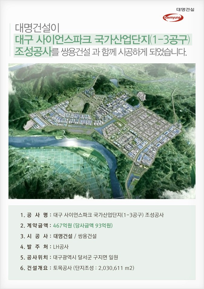 제목 [건설수주]대구 사이언스파크 국가산업단지(1-3공구) 조성공사